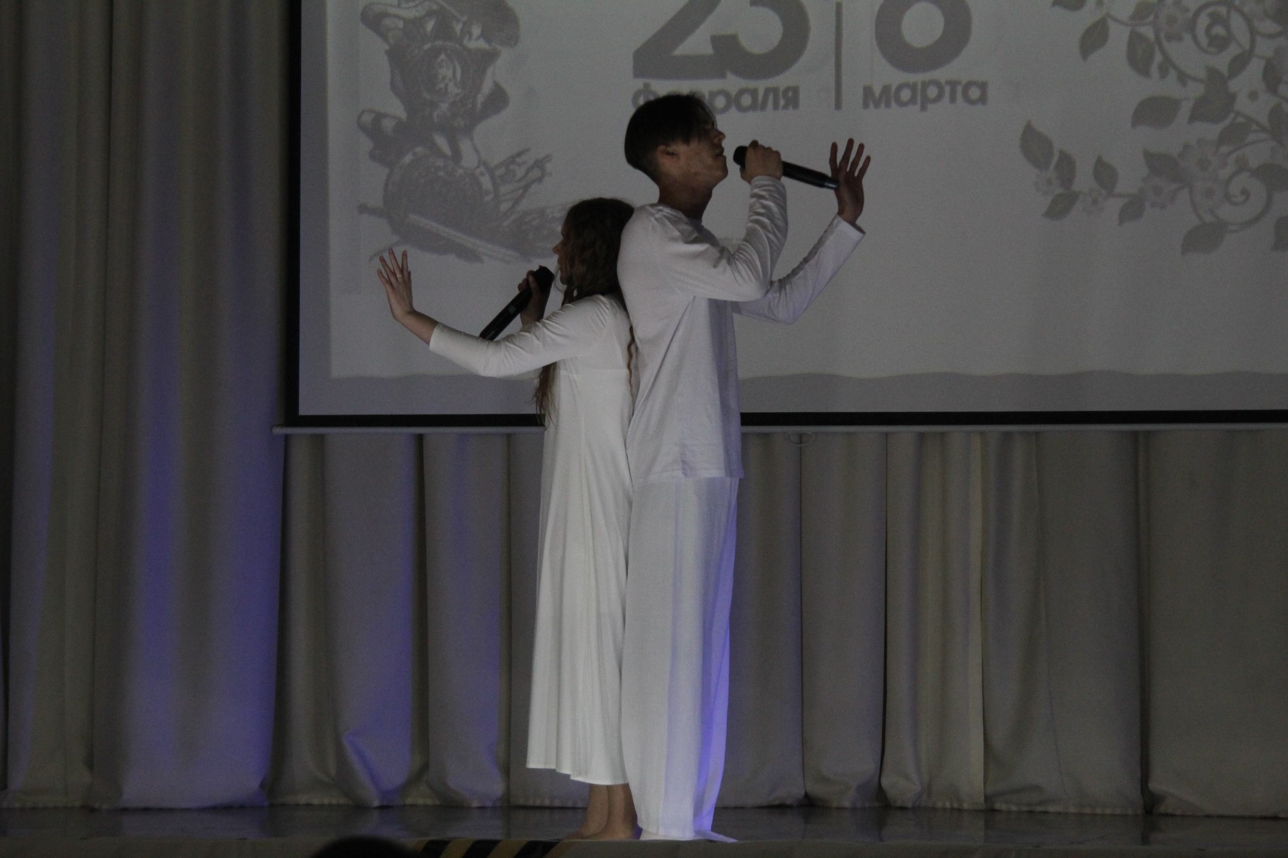 Праздничный концерт, посвященный двум знаменательным датам — 23 февраля и 8 Марта стал -замечательным подарком на уже прошедший День защитника Отечества и грядущий Международный Женский день. Были исполнены танцы и песни, подарившие улыбки всему залу.